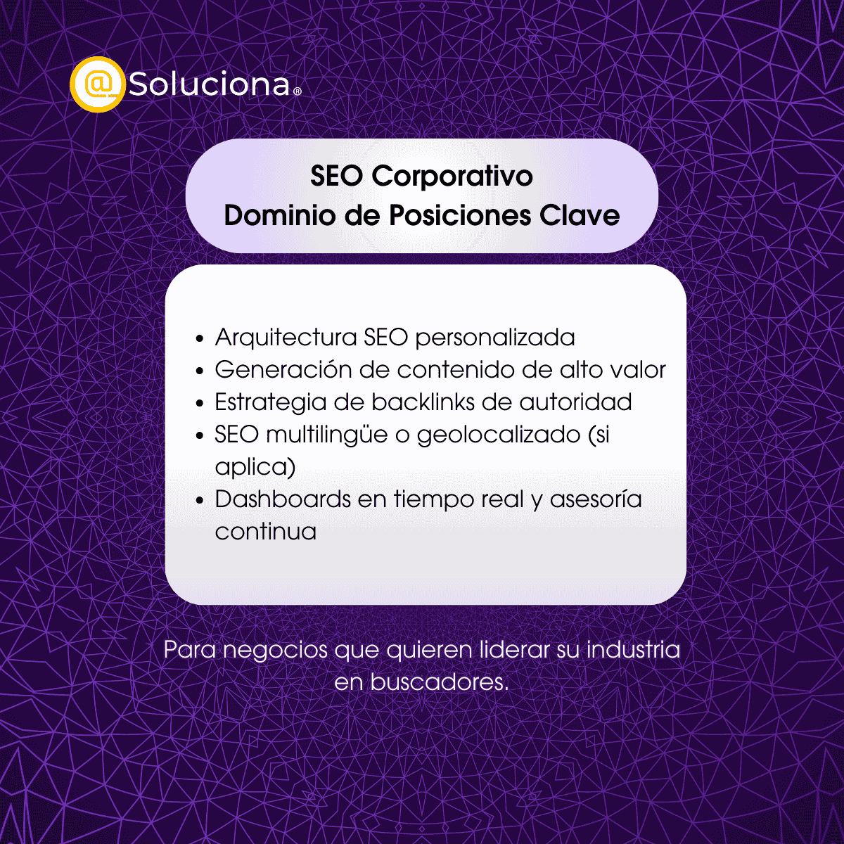 En Soluciona, optimizamos tu sitio para que aparezca, destaque y convierta.